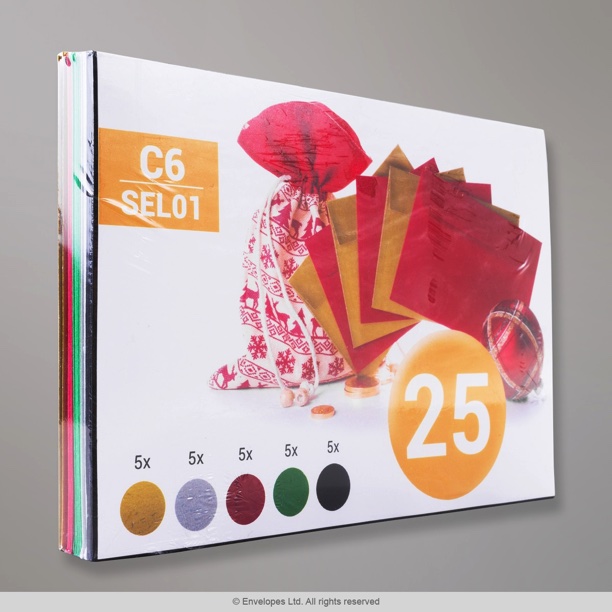 114x162 mm (C6) Festive Assorted envelopes (pack 25)